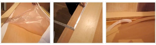 用壓板施與平均壓力,此步驟非常重要,由於黏著劑屬感壓膠的特性,當您施與愈紮實的壓力,將會得到最好的黏貼效果。
