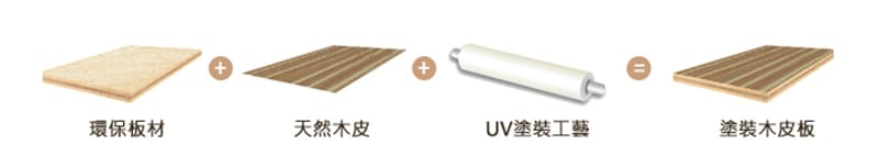 塗裝木皮板係將木皮板加上塗裝技術,可大輻縮減現場施作的時間。目前約有100多種紋路及顏色可供選擇,當然我們會依客戶的需求持續開發新品。